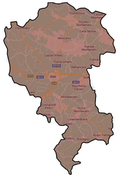 Il Monferrato, conosciuto anche come Monfrà in piemontese e Mons ferratus in latino, è una storica e affascinante regione del Piemonte, caratterizzata da un territorio prevalentemente collinare. Situato principalmente nelle province di Alessandria e Asti, si estende verso sud dalla riva destra del Po fino ai piedi dell'Appennino Ligure, lambendo i confini con la città metropolitana di Genova e la provincia di Savona. Questo territorio unico confina a nord-est con la Lomellina, storica area lombarda, e a ovest si collega senza interruzioni alle Colline Torinesi. Inoltre, a sud-ovest, il Monferrato si intreccia con altre celebri regioni piemontesi come le Langhe e il Roero, appartenenti alla provincia di Cuneo, creando un paesaggio ricco di storia, cultura e tradizioni.